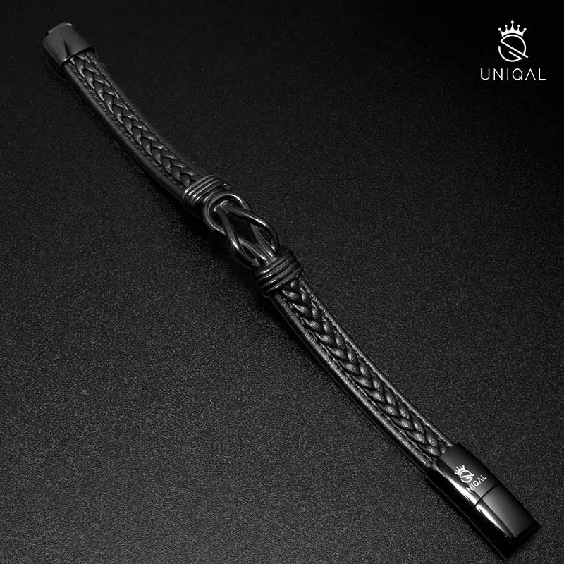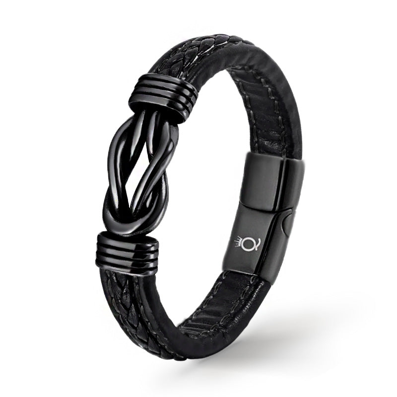 Das ETERNAL Lederarmband für Herren ist ein zeitloses und symbolträchtiges Accessoire, das einen Hauch von Eleganz und Stil verleiht. Hergestellt aus echtem schwarzen Rindleder, strahlt es Robustheit und Raffinesse aus. Das Armband ist aus einem einzigen Strang geflochten und verfügt über ein integriertes Unendlichkeitselement in Schwarz.