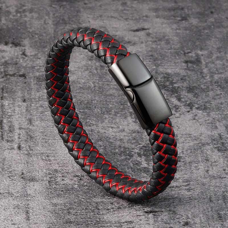 Wenn Sie einen klassischen Look mit einer hervorragenden Wendung suchen, ist dieses Armband genau das, wonach Sie gesucht haben. Der superklassische Magnetverschluss aus Edelstahl hat zwei verschiedene Designs Ihrer Wahl. Kleiden Sie sich stilvoll mit diesem einzigartigen Lederarmband, das perfekt zu Ihrer Uhr passt.Das Armband ist ein stilvolles Accessoire aus Leder, das dem Look den letzten Schliff verleiht. Es liegt voll im Trend und ist der absolute Hingucker!